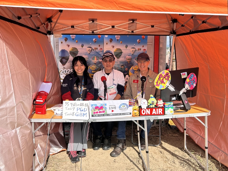 また、競技期間中パイロットのブラック氏と為村講師が佐賀バルーンフェスタ組織委員会公式ネットでYouTube Live配信のインターネット生中継にも参加して、バルーンの素晴らしさ、佐賀の大会の特徴など説明を行いました。