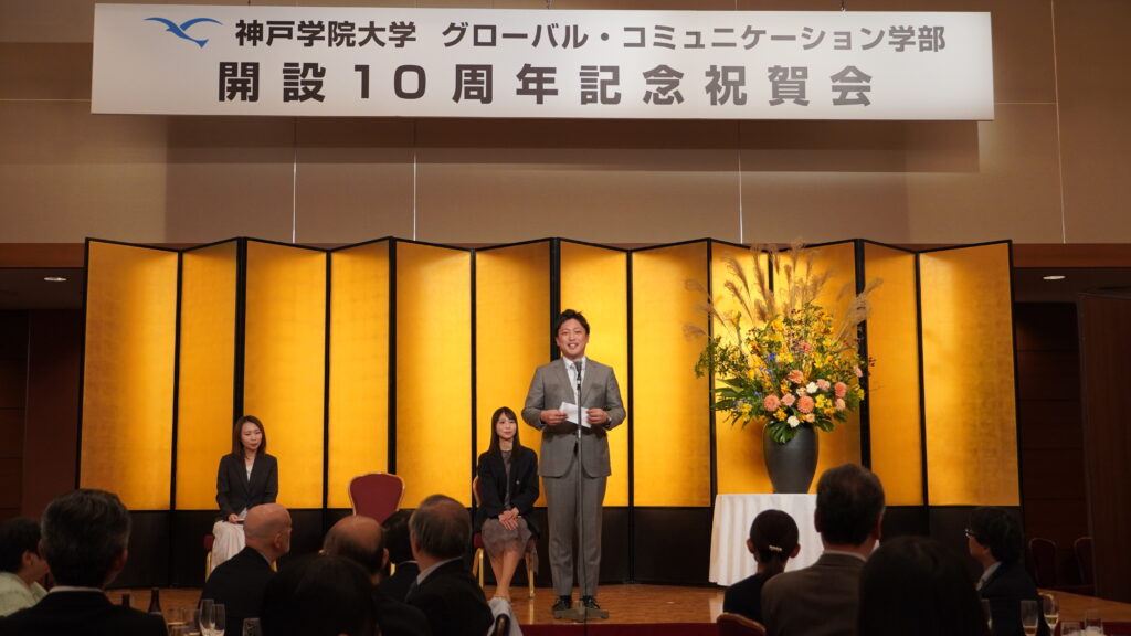 グローバル・コミュニケーション(GC)学部 の開設10周年記念式典と祝賀会が11月8日、 神戸ポートピアホテルで開かれました。多数の来賓をお招きし、卒業生も各地から駆けつけました。