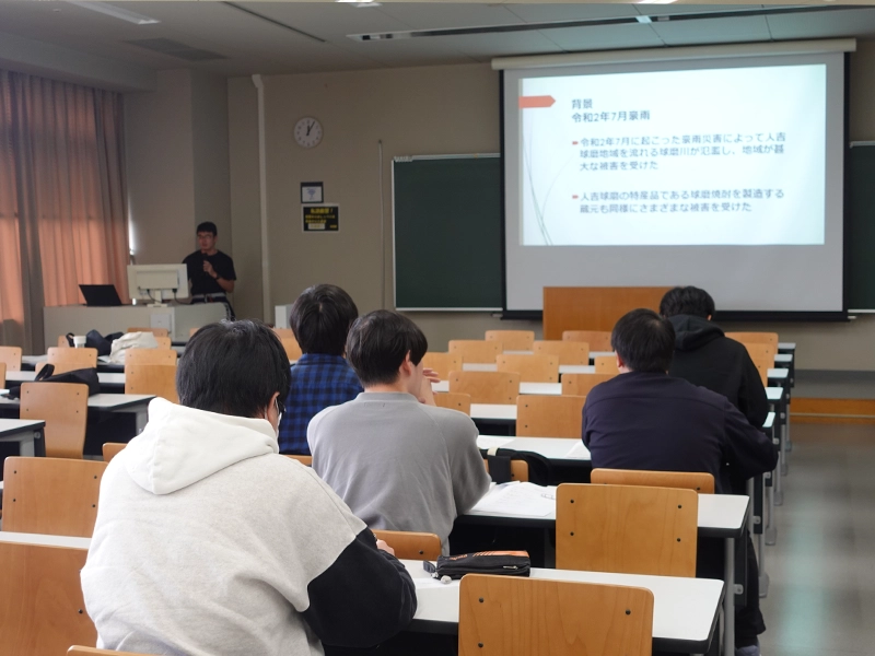 有瀬キャンパスの大学祭に合わせて、人文学部の大原ゼミ、北村ゼミ、鈴木ゼミとグローバル・コミュニケーション学部の千田ゼミに所属する4年次生による一般公開の卒業論文中間発表会が11月2日、有瀬キャンパス11号館で行われました。