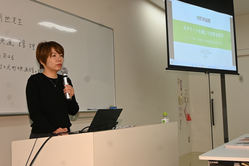 演題は「スクリーンを通じて世界を知る――ミニシアターの役割と元町映画館の取り組み」です。日中関係の悪化が懸念される中、学生に中国への関心を失わず、現代の状況をより深く理解してほしいと、今年、多くの中国映画を上映している元町映画館の魅力を伝えてもらうことにしました。