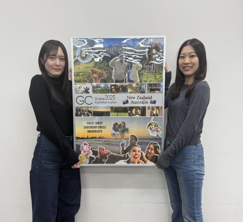 留学での思い出や日常の一コマをポスターに表現しました。GC学部での学生生活には多くの学びや出会いがあり、その一つひとつを形に残したいという思いから、写真を文字の中に取り入れる工夫をしています。現地で感じた空気や日々の出来事が少しでも伝われば嬉しいです。これから留学を控えている学生や、GC学部に興味を持っている方にぜひご覧いただき、学生生活の魅力を感じていただければと思います。